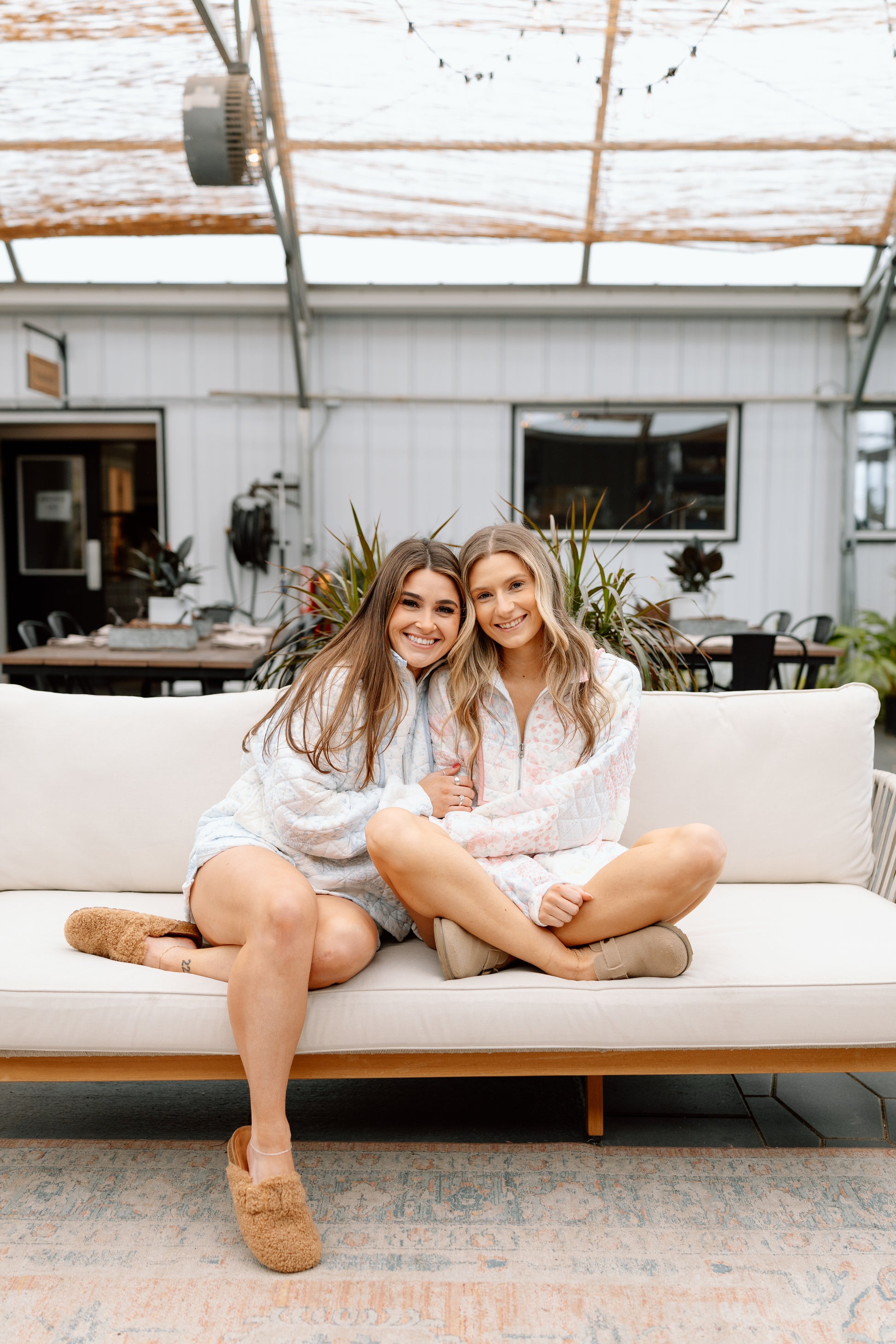 Relaxed fit quilted set. Blue pastel tones. Need we say more???? In between sizes, go down.