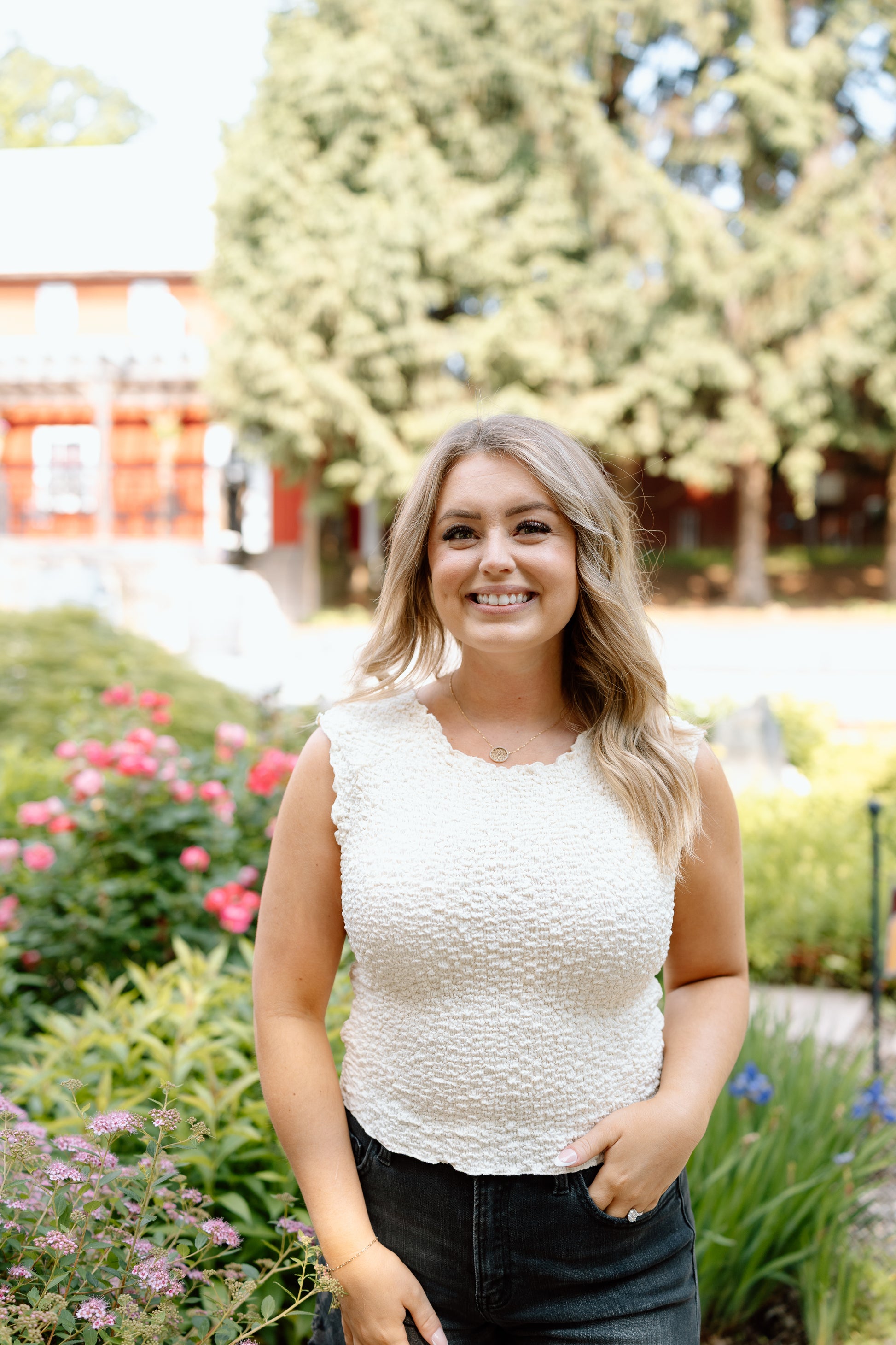 Sleeveless frill top - giving all the feminine energy. A trendy banana color! Super stretchy on our figure. A go-to, effortless look. True to size! In between, go to your smaller.