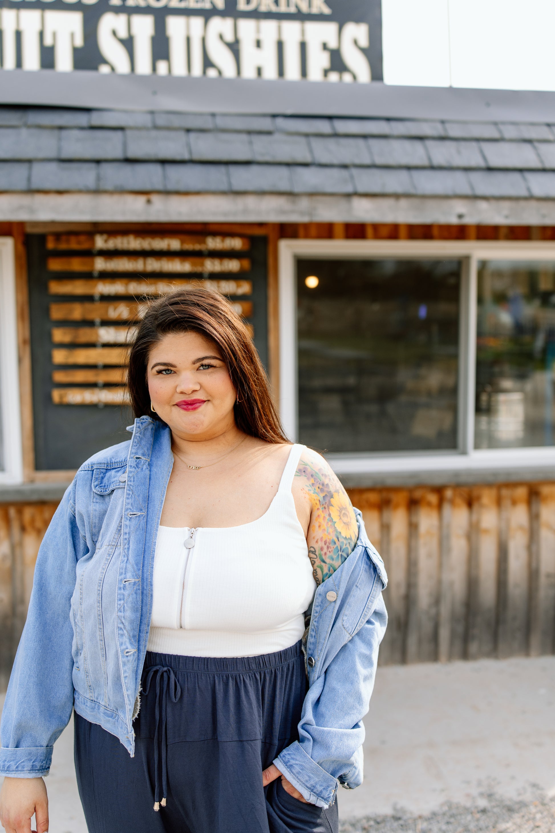 A ribbed tank with zipper detail. White in color, to pair with SO many looks. True to size. Chanele is in the size 1X.