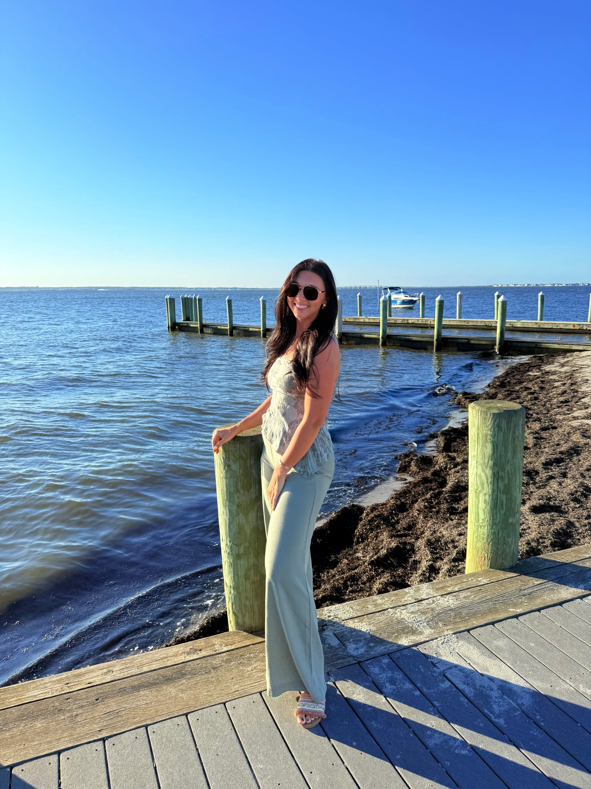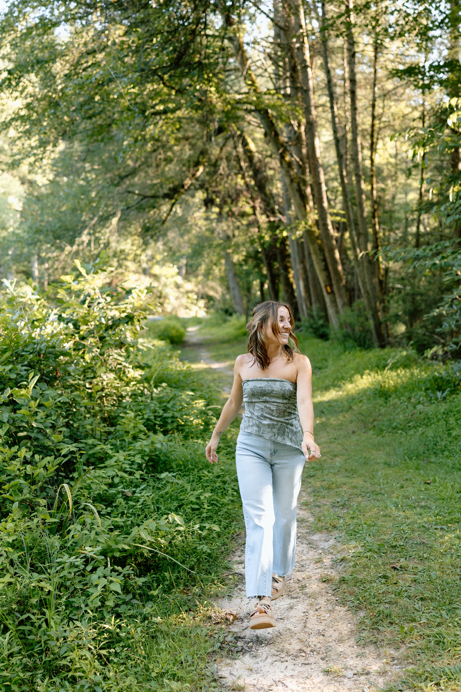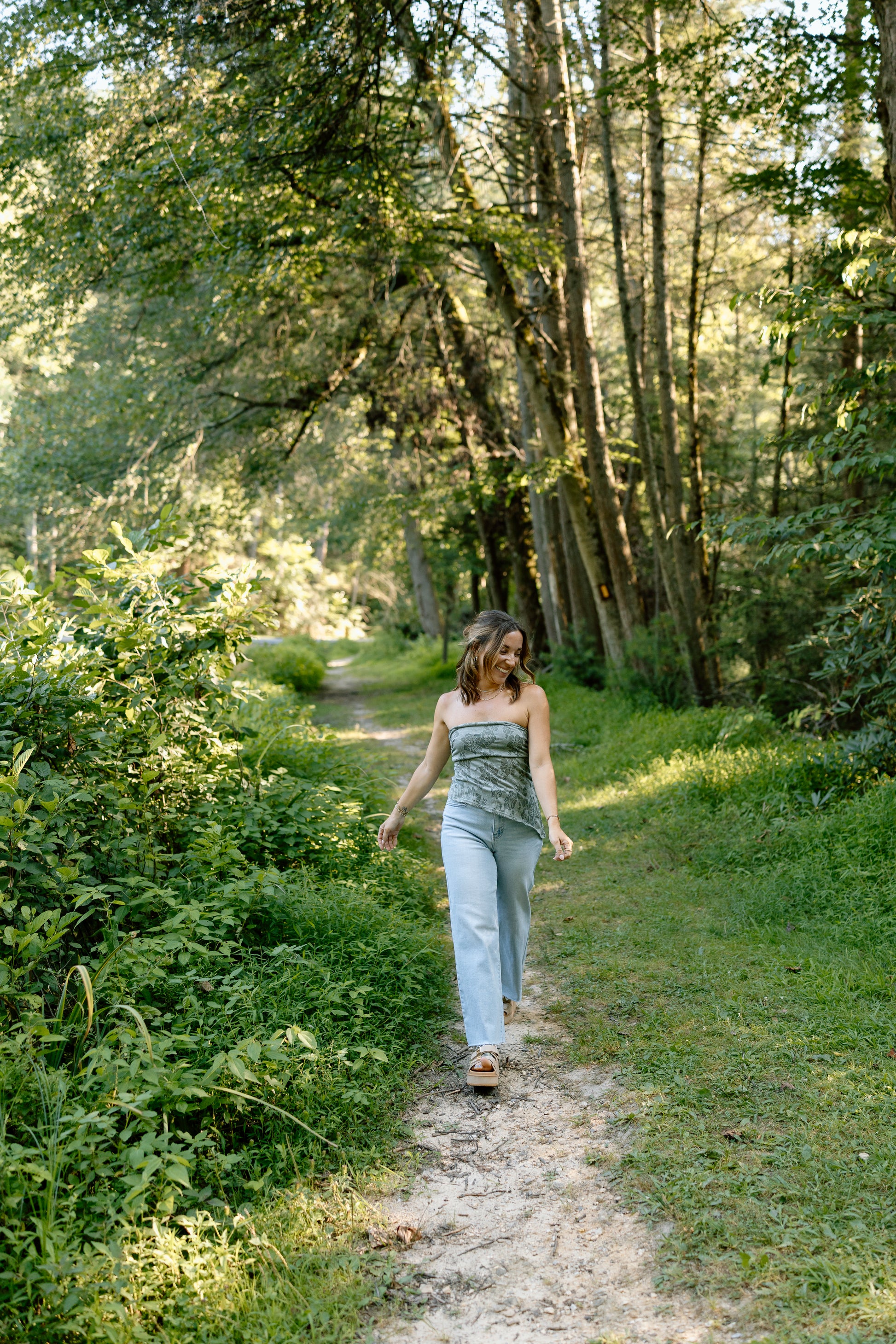 This top && a fresh fan 👌🏻👌🏻👌🏻 The muted teal tone was immediately added to my favorites. A soft blended material, side ruching for comfort, and an asymmetrical cut to keep us trendy! True to size fit.