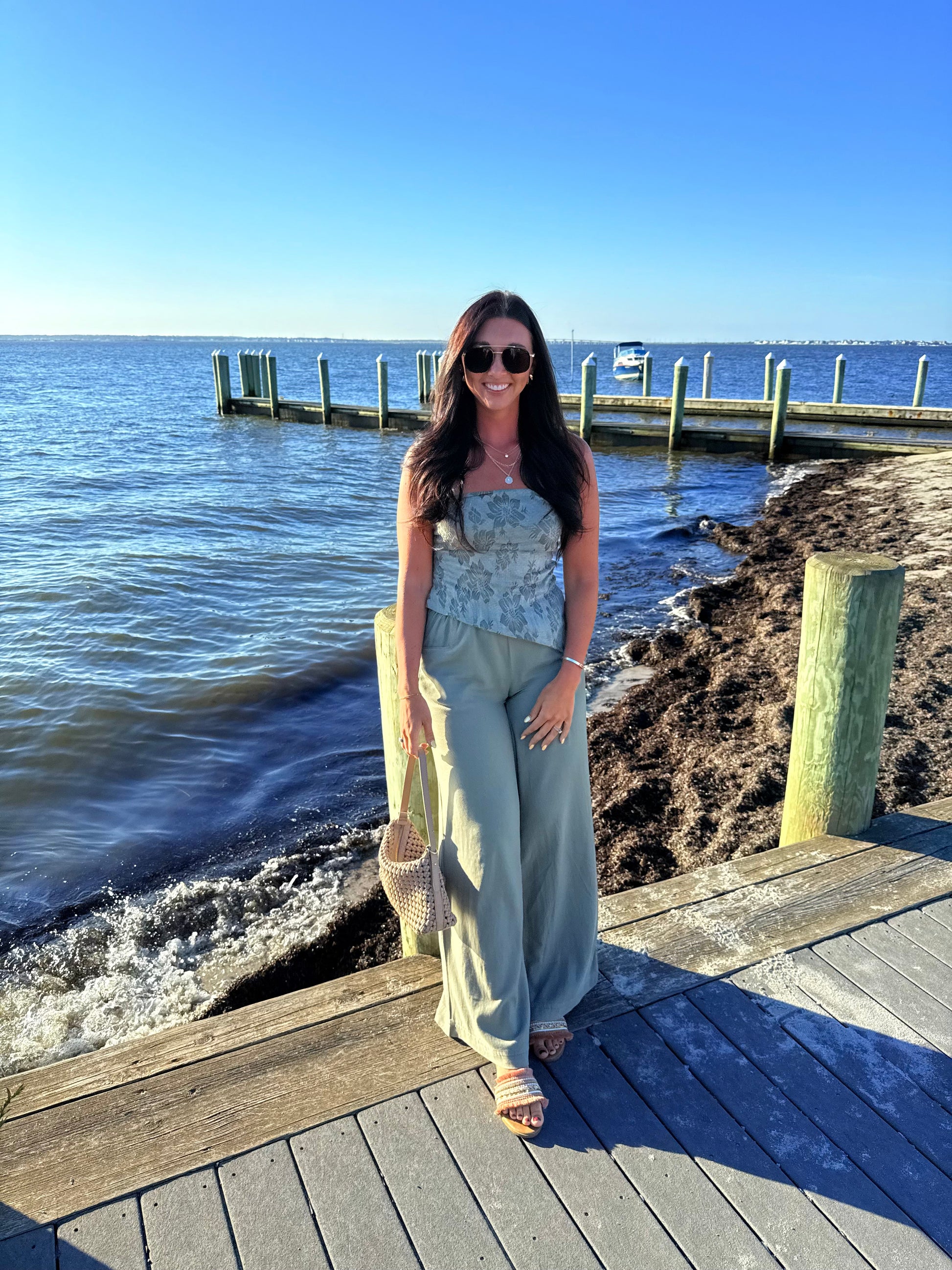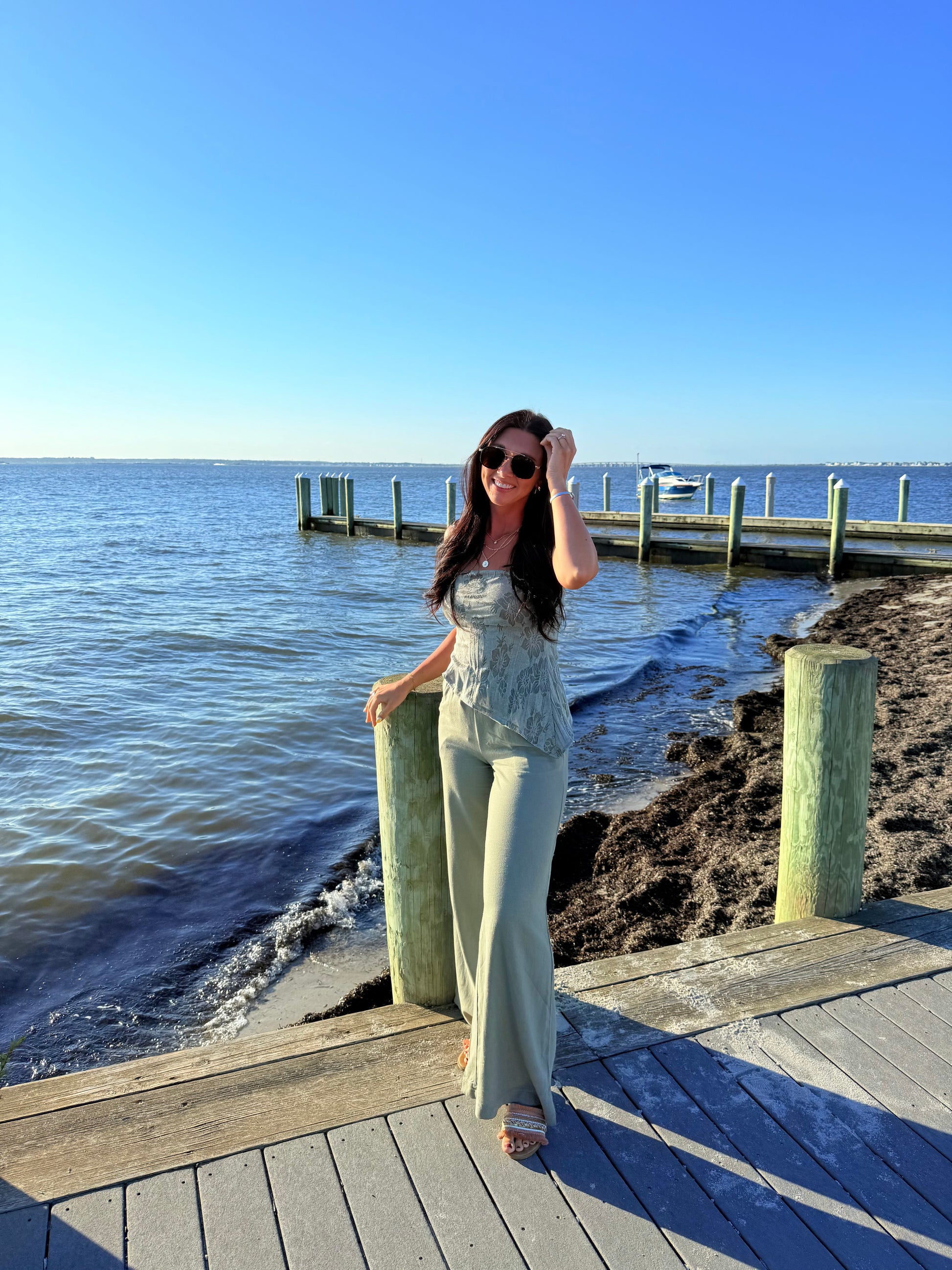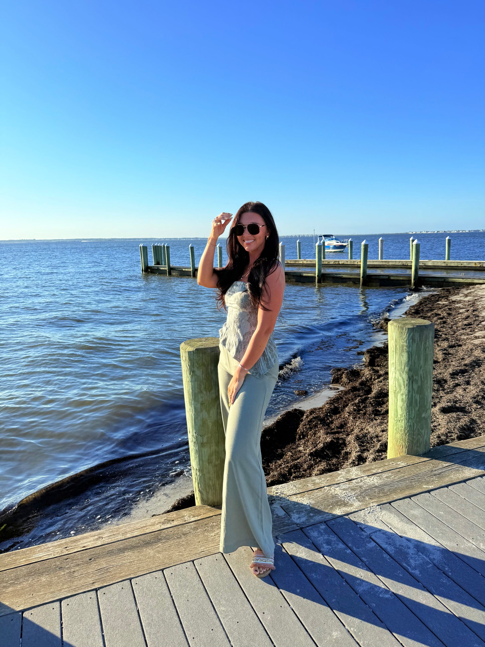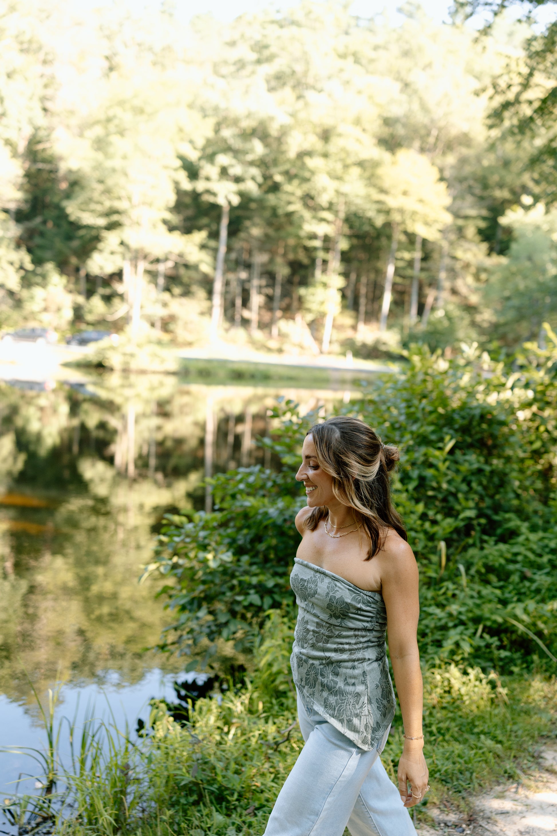 This top && a fresh fan 👌🏻👌🏻👌🏻 The muted teal tone was immediately added to my favorites. A soft blended material, side ruching for comfort, and an asymmetrical cut to keep us trendy! True to size fit.