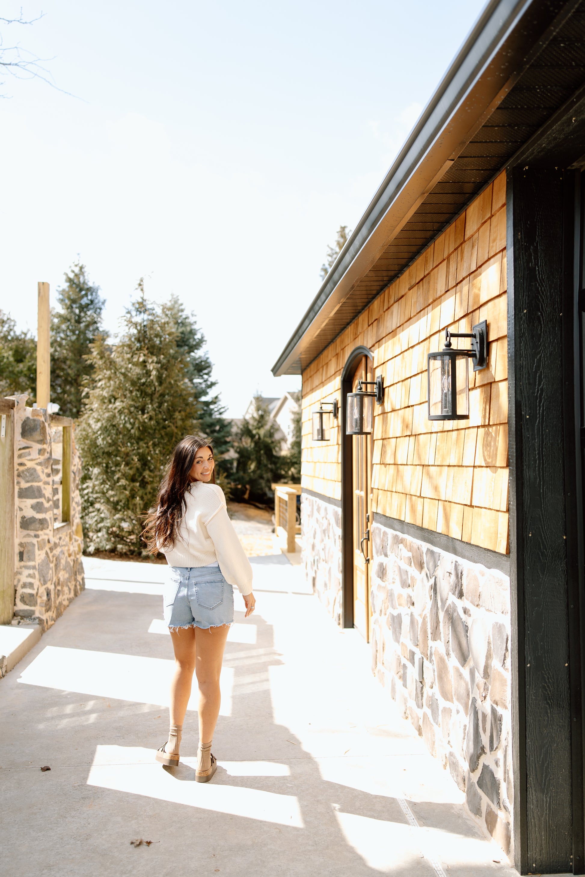 High rise, distressed hem shorts. The perfect Spring short to pair with your long sleeve tops. Comfort stretch denim. Rise: 10 1/2" / Inseam: 3 1/2"