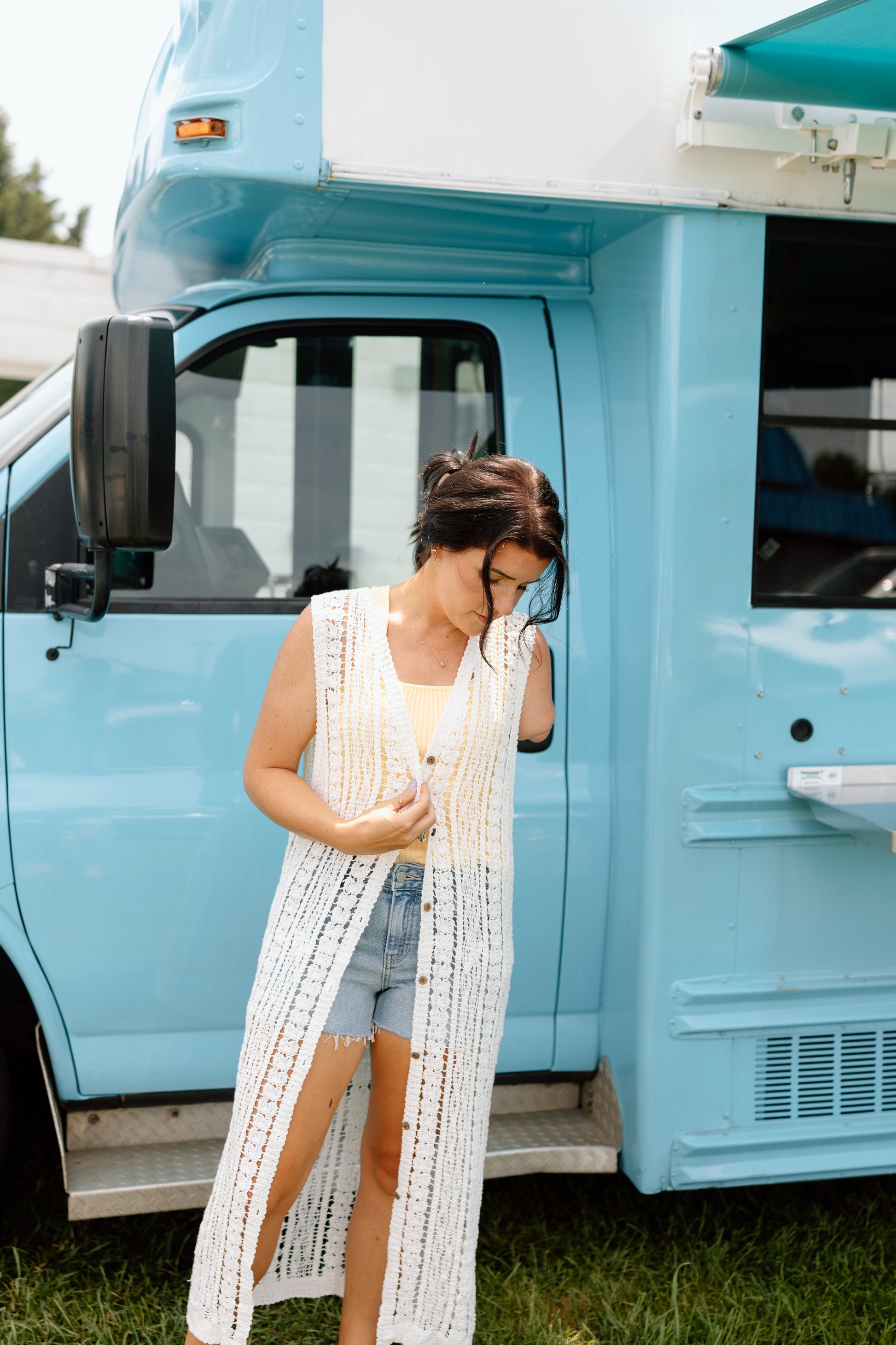 Sleeveless button down crochet kimono. 65% COTTON 35% POLYESTER