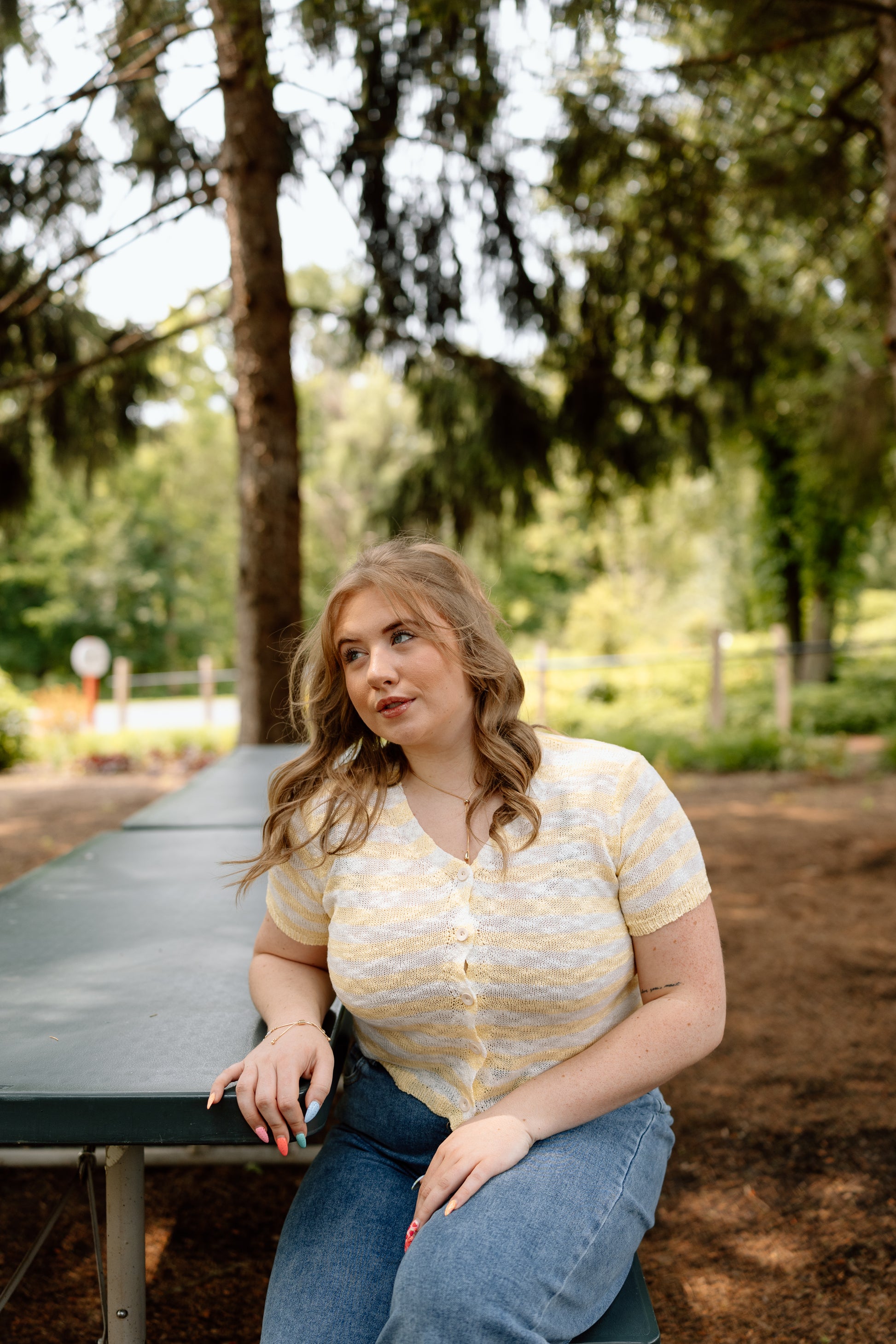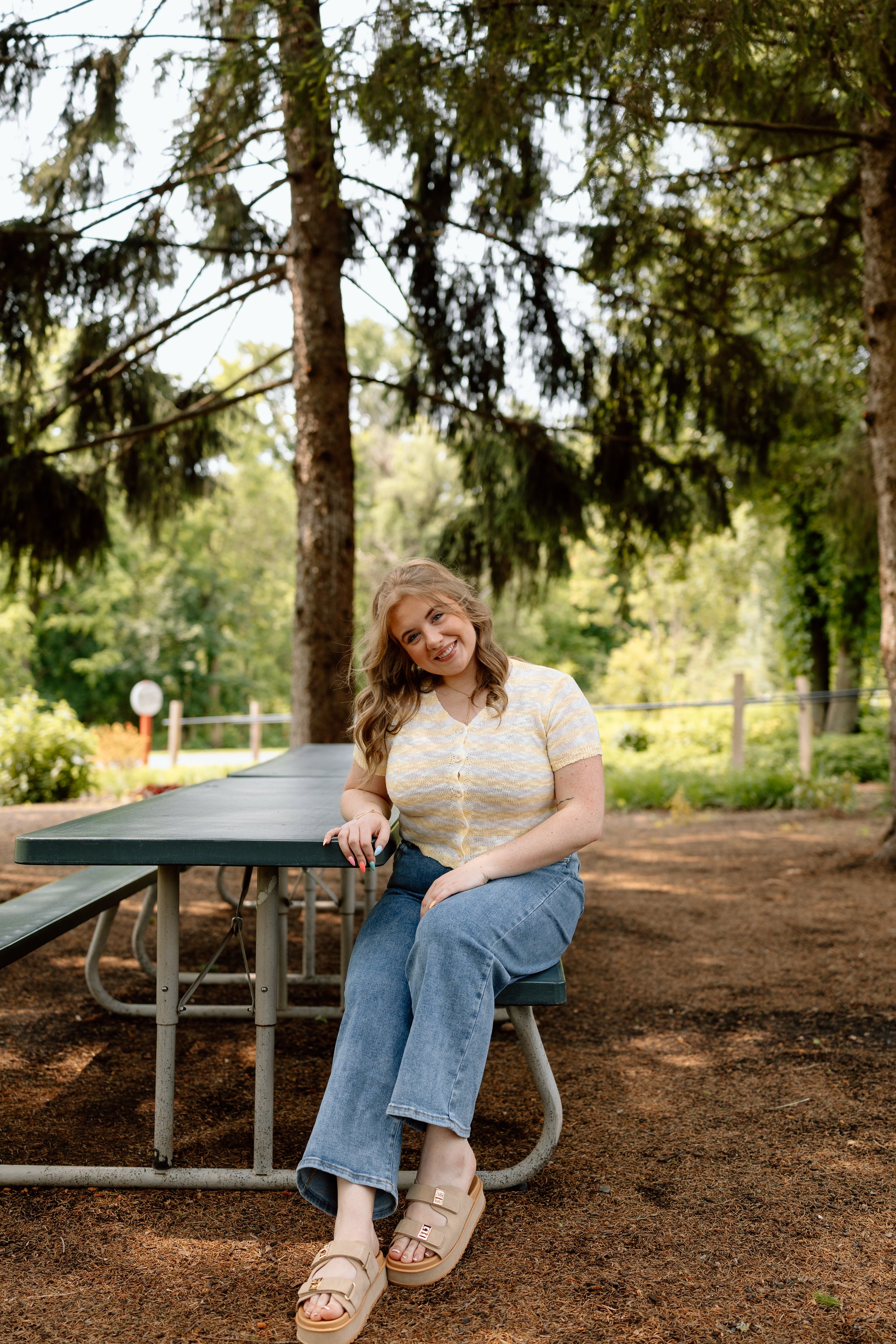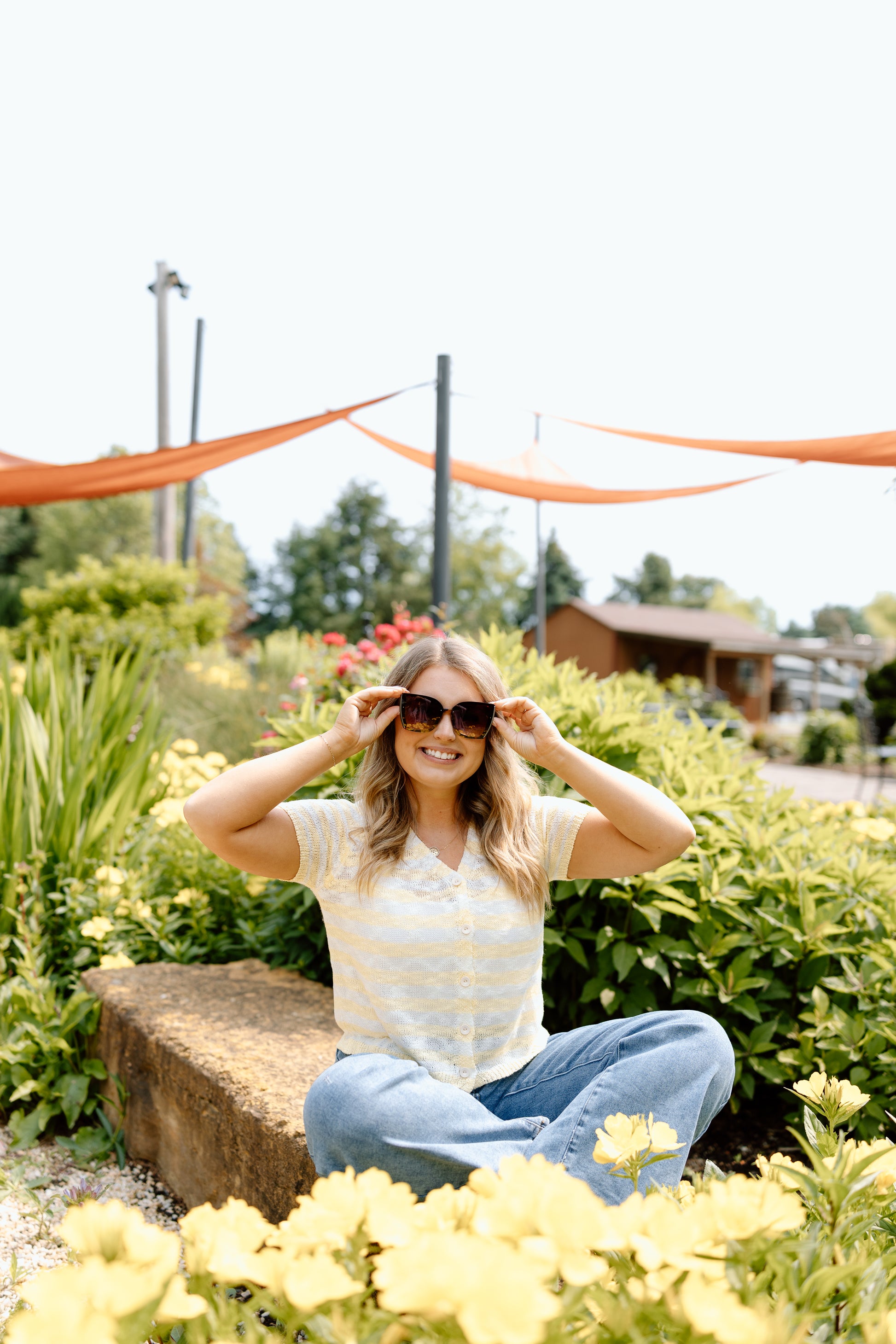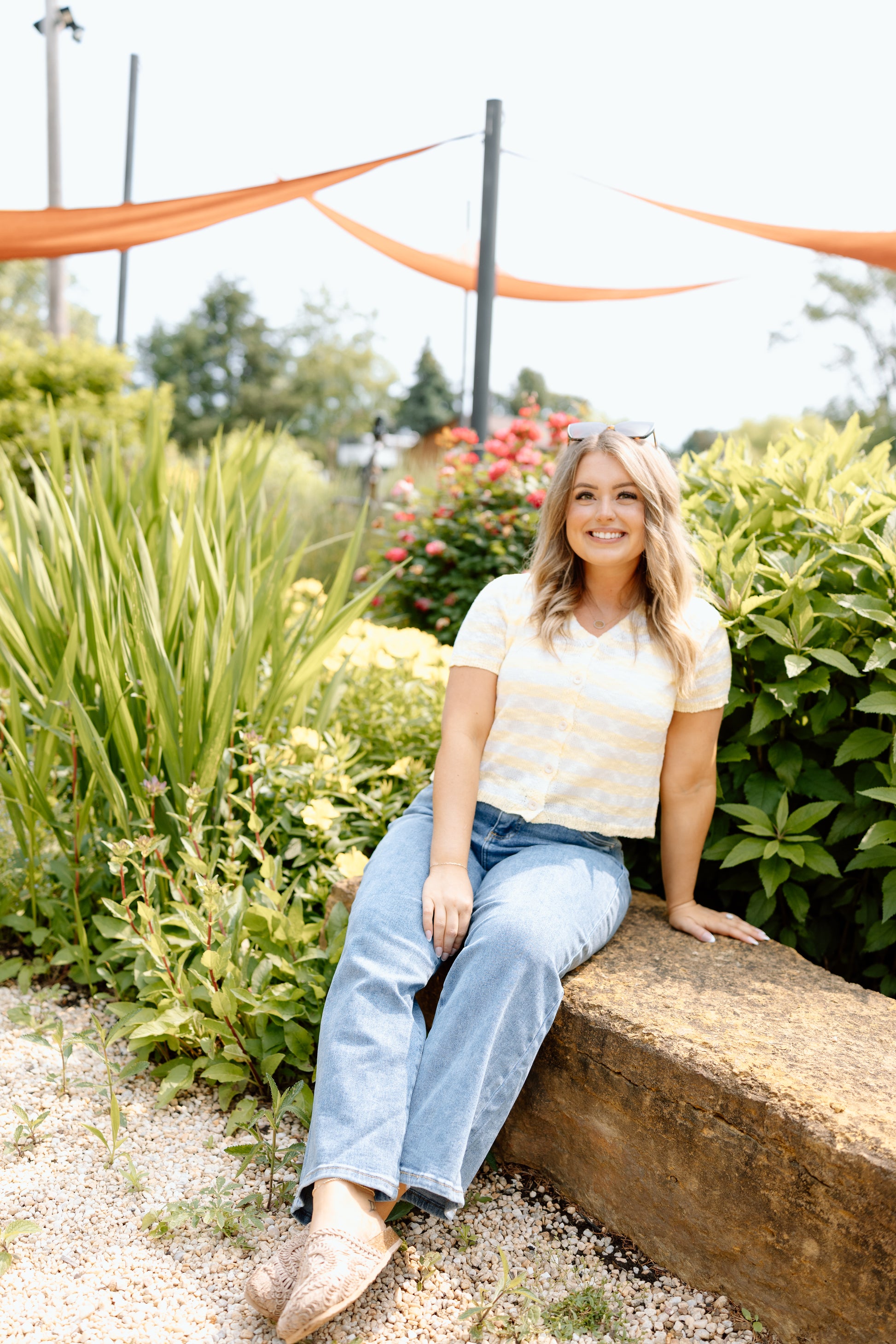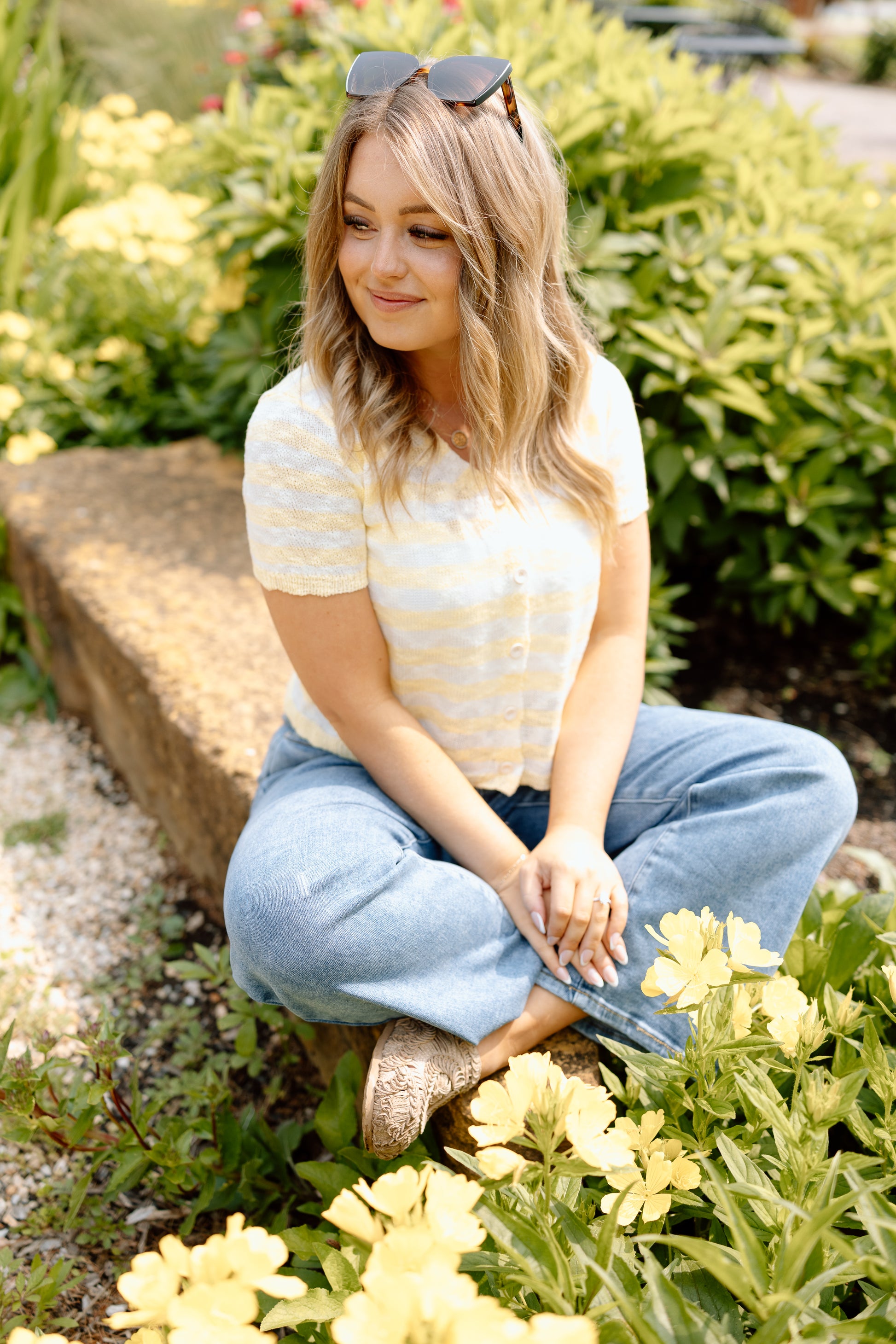 Lightweight top with trending pale yellow and white stripes. Front button details. True to size!