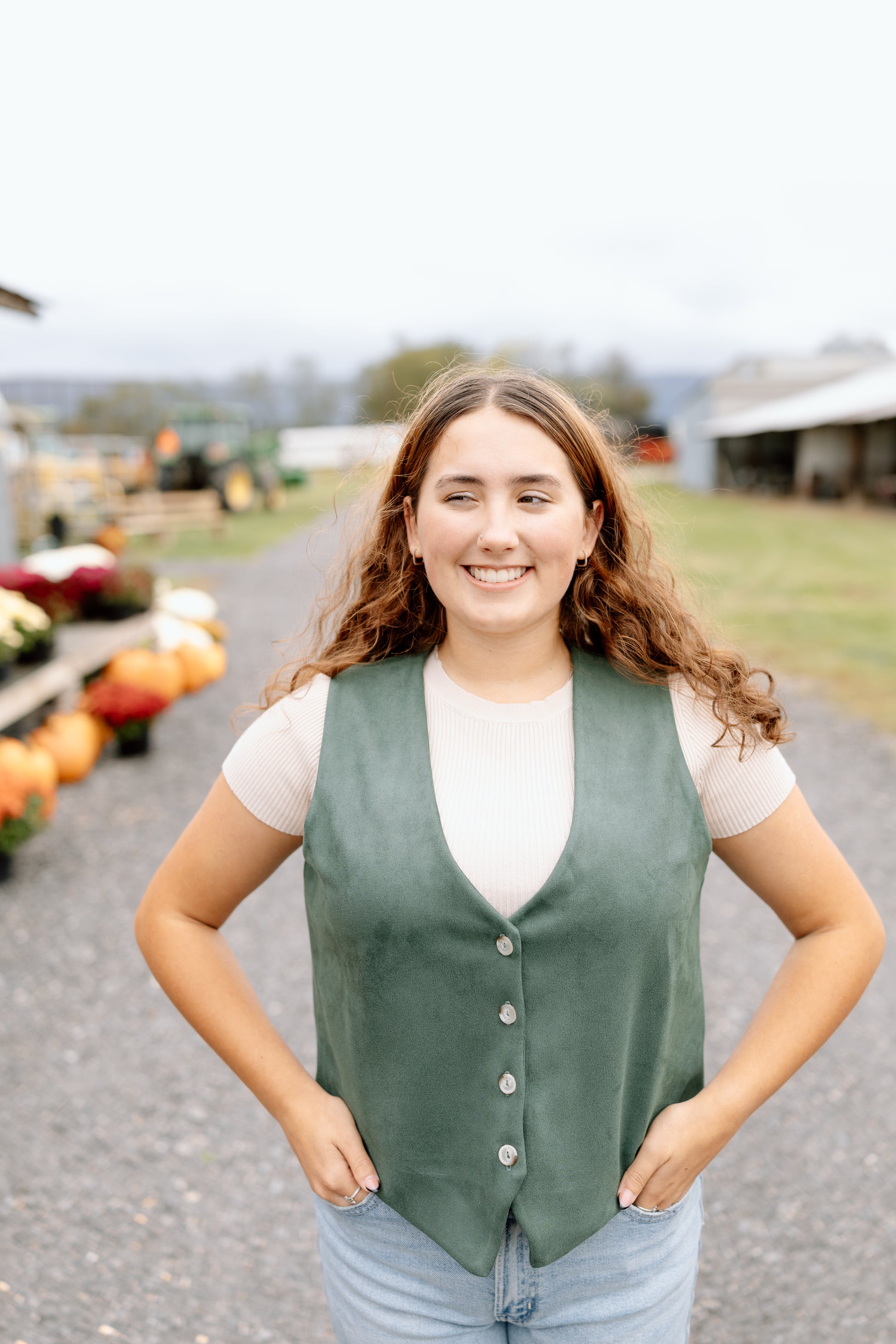 Suede bunch button down vest. Wear now for the fall season but also transition to the holiday season! Relaxed fit, you fine size down one.