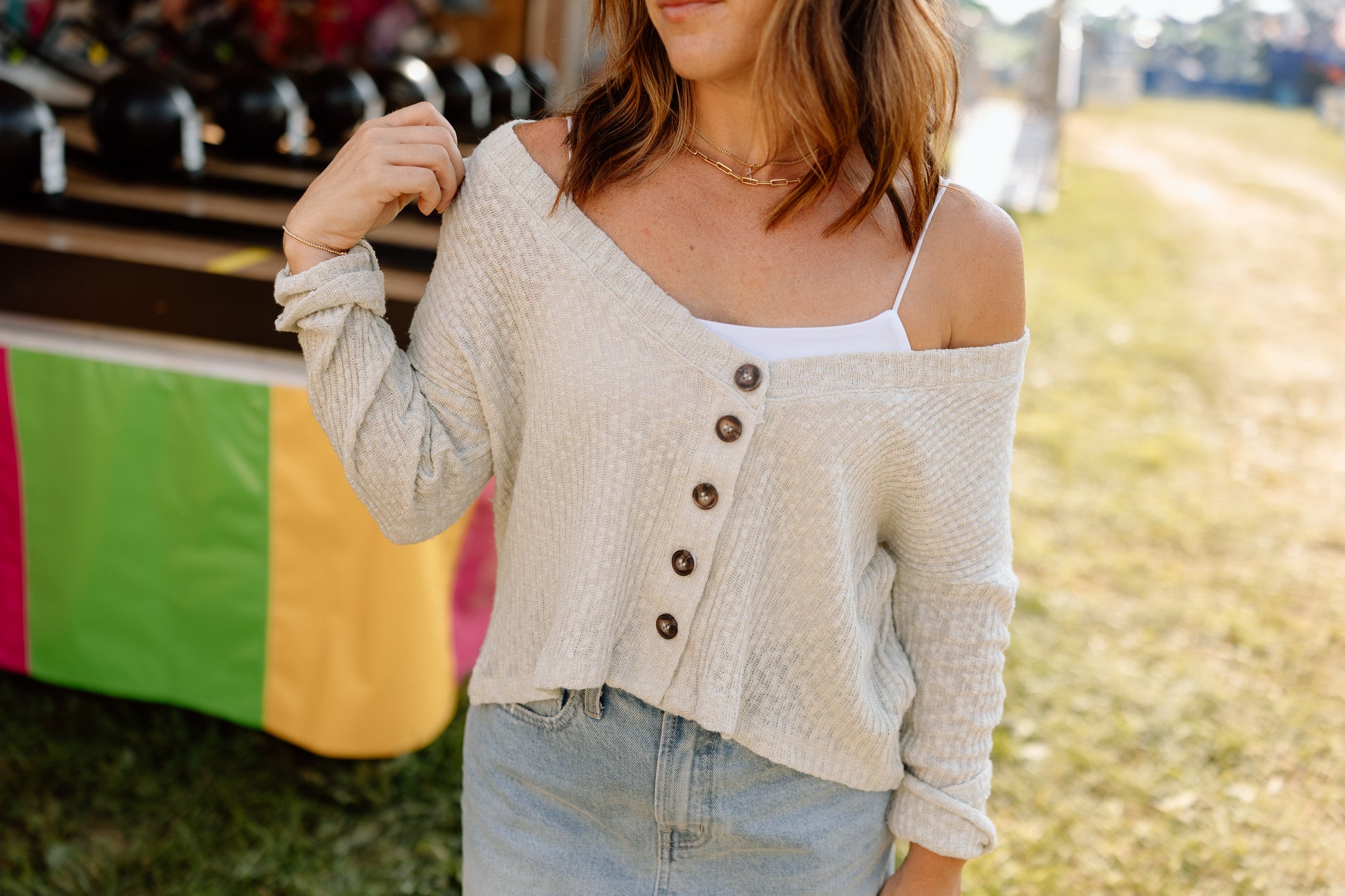 The perfect transition top as we change into a new season! Button down front, light weight long sleeve, ribbed texture. Dress up or down depending on your to-do list! Relaxed fit.