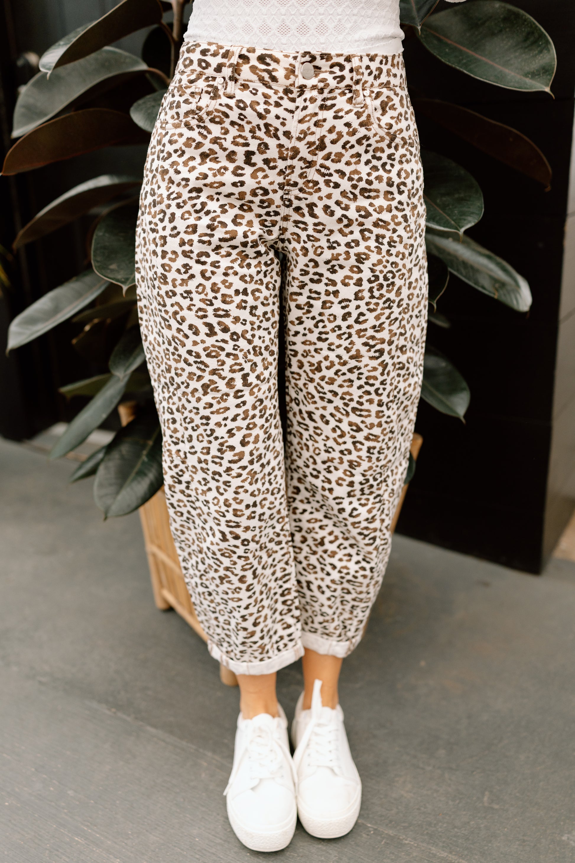 Leopard print + The best barrel jean = YOUR NEW FAV PANTS. Mid rise. About a 28” inseam un-cuffed. Slight barrel cut (not too barrel-y). Relaxed denim fit.