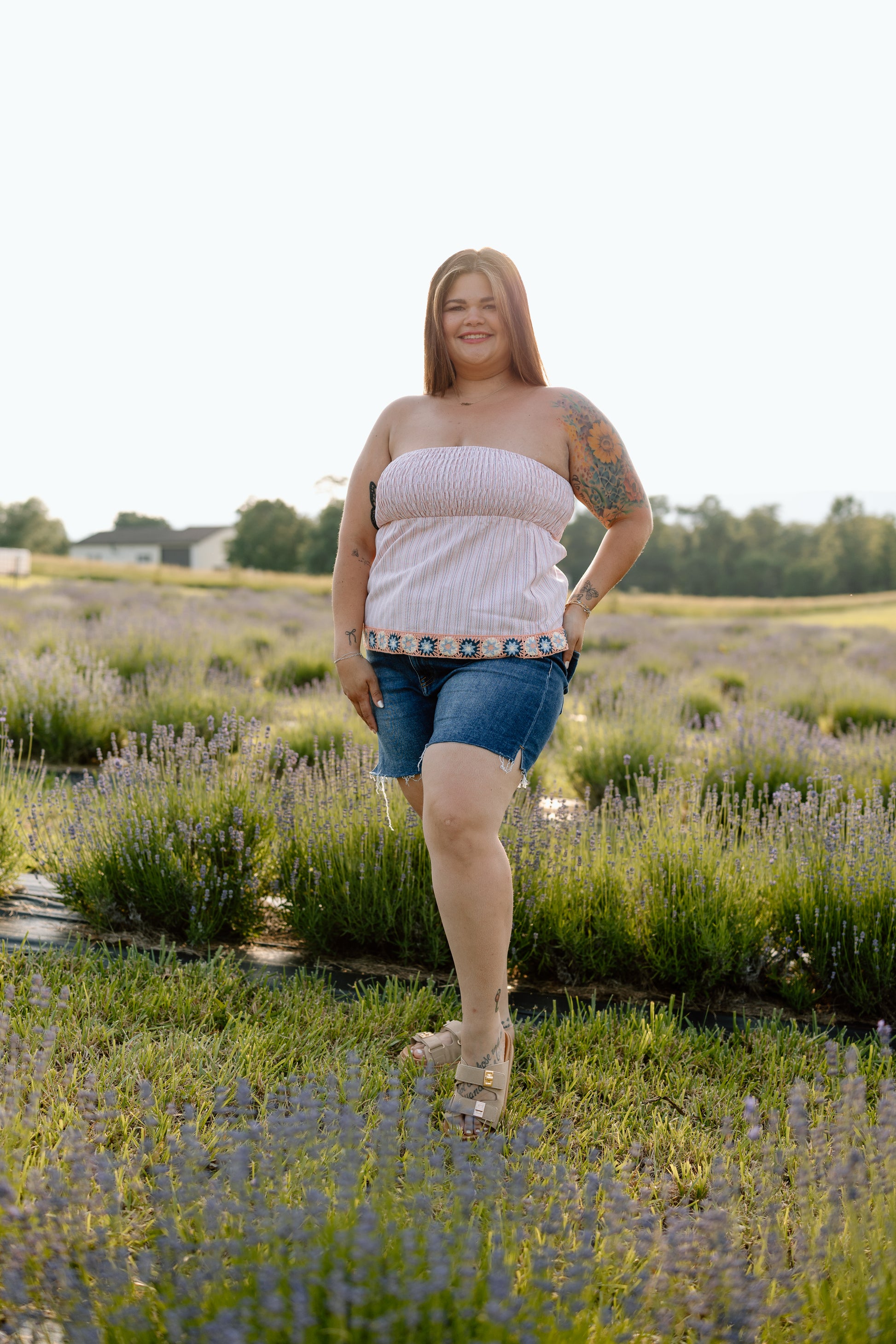 High rise, raw cut hem side slit shorts. Rise 10 3/4". Inseam 4". Can be worn cuffed for a shorter inseam (how Vanessa styled them).