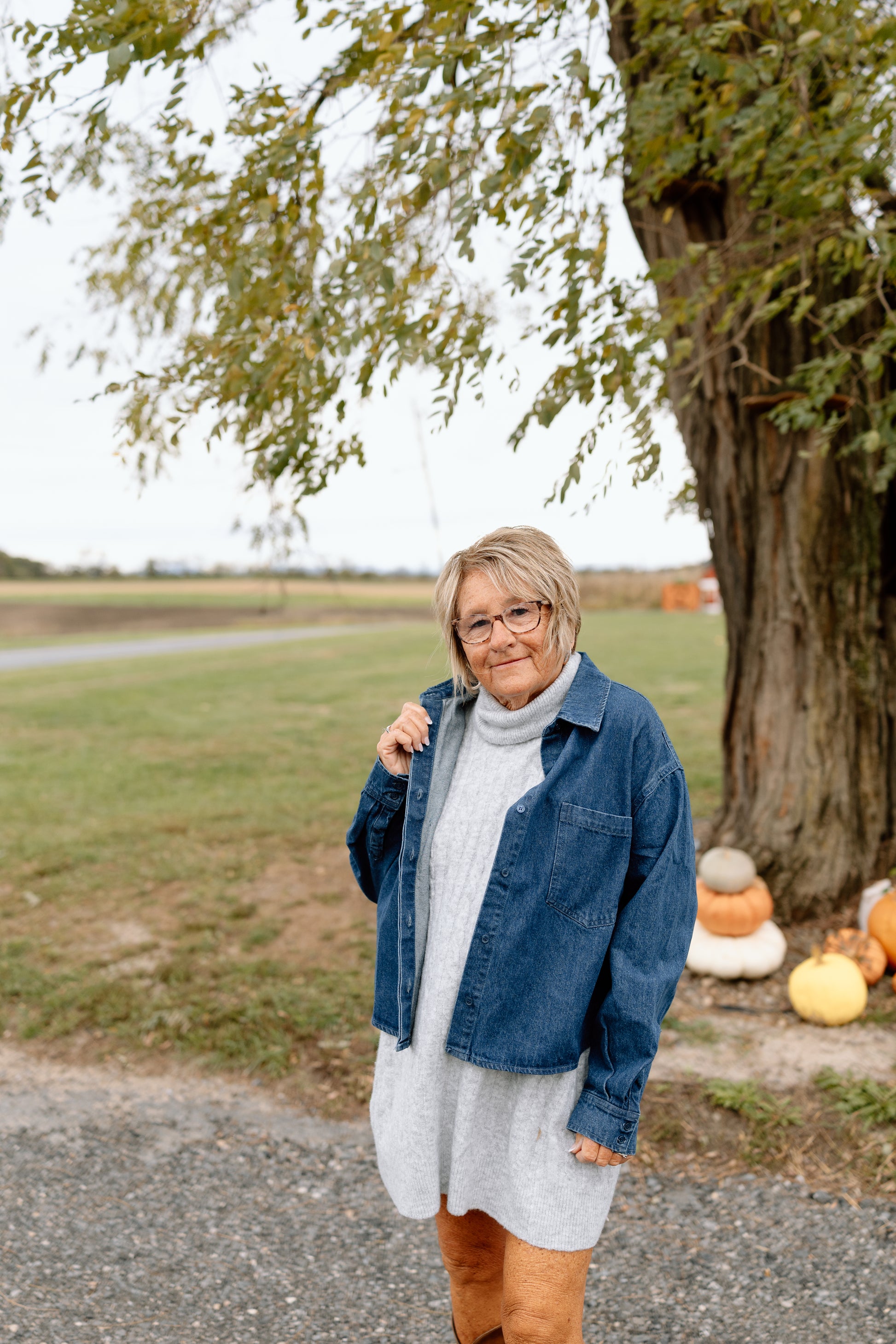 A perfect waist length jacket, in a dark wash denim. Button details and front pocket. True to size!