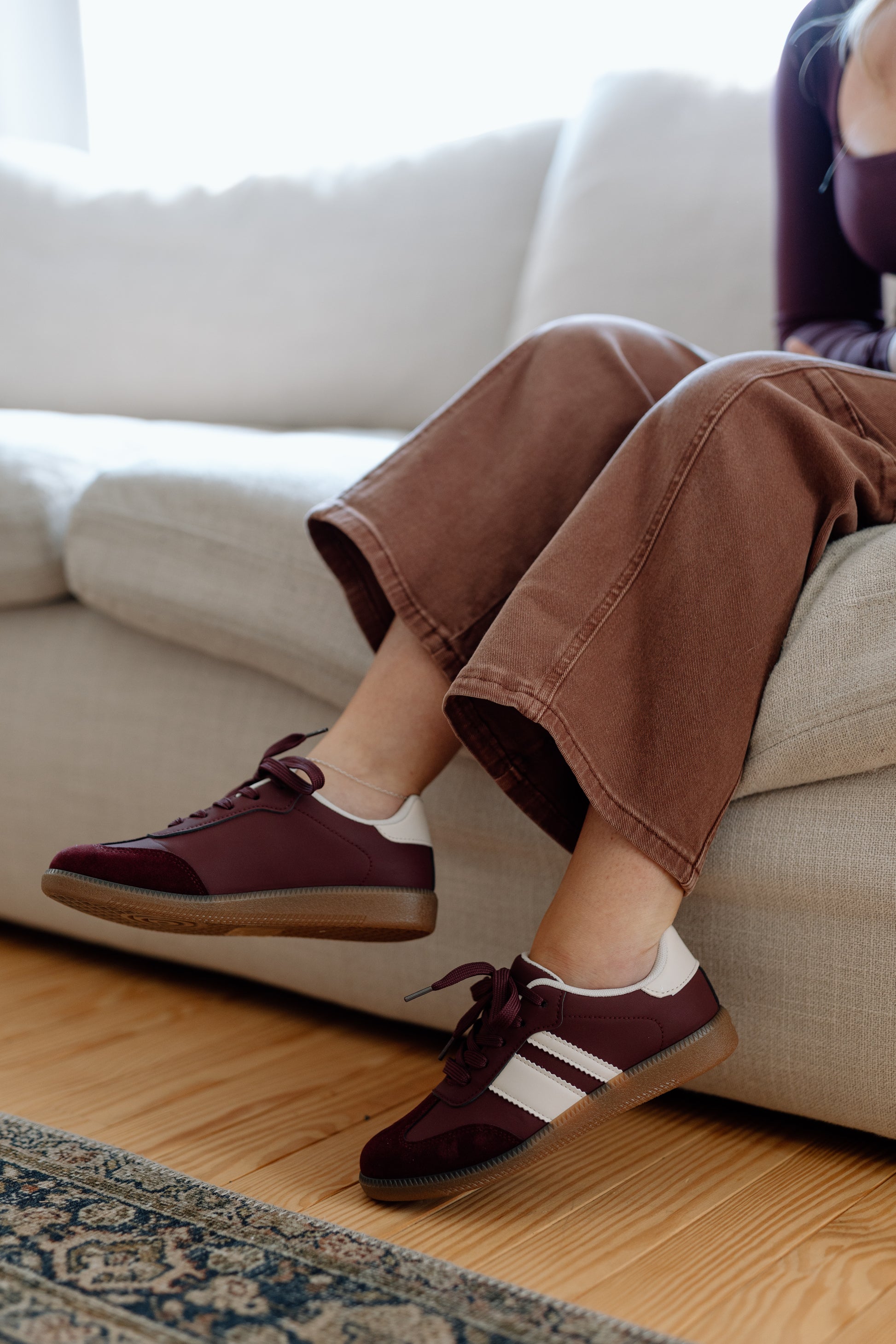 Trendy burgundy color - TONS of tops within the launch to match :) Available in whole sizes, half size - go down!