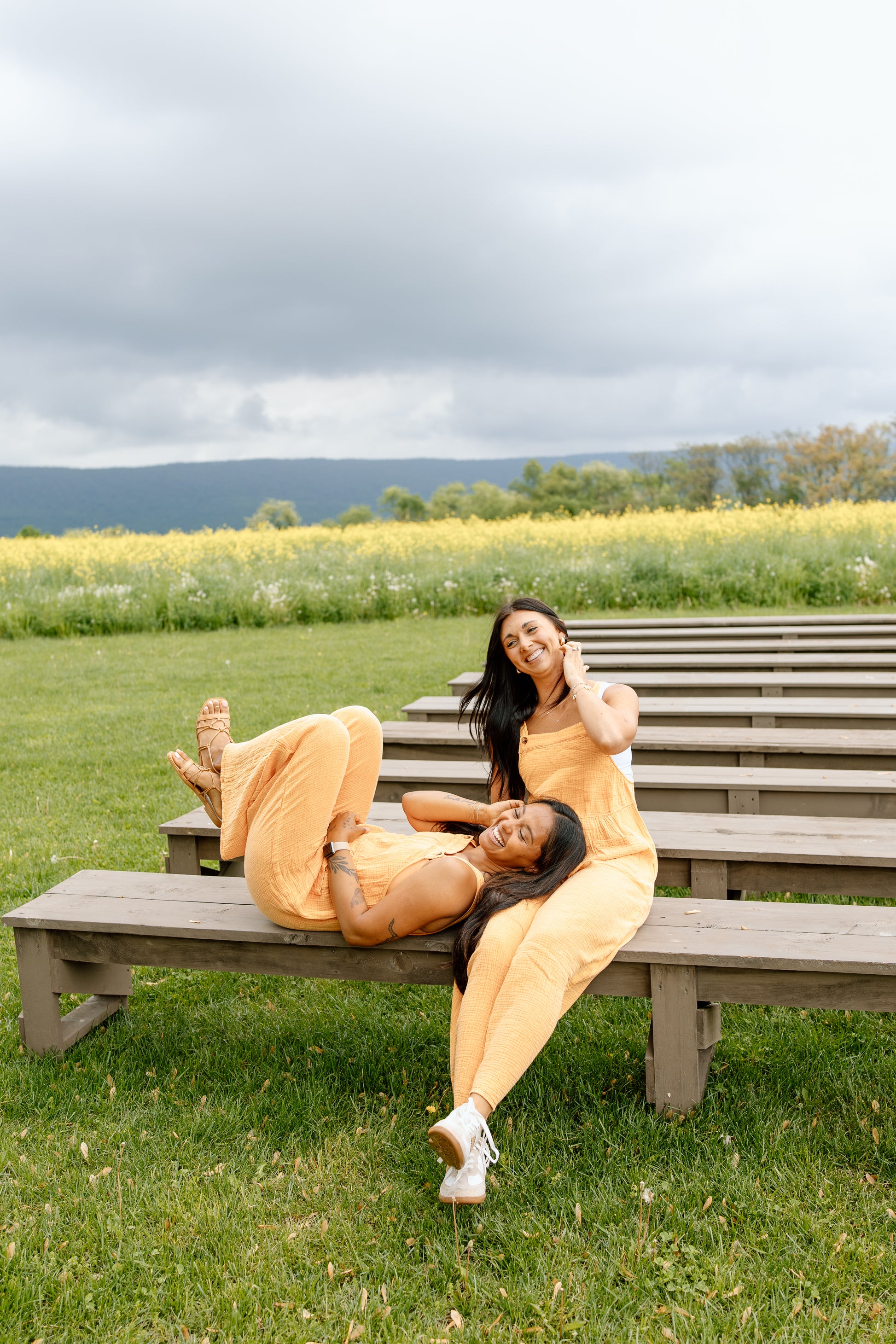Effortless mineral washed gauze overalls in a beautiful peach tone. Front pockets, functional buttons. Straight leg cut. 28" inseam.