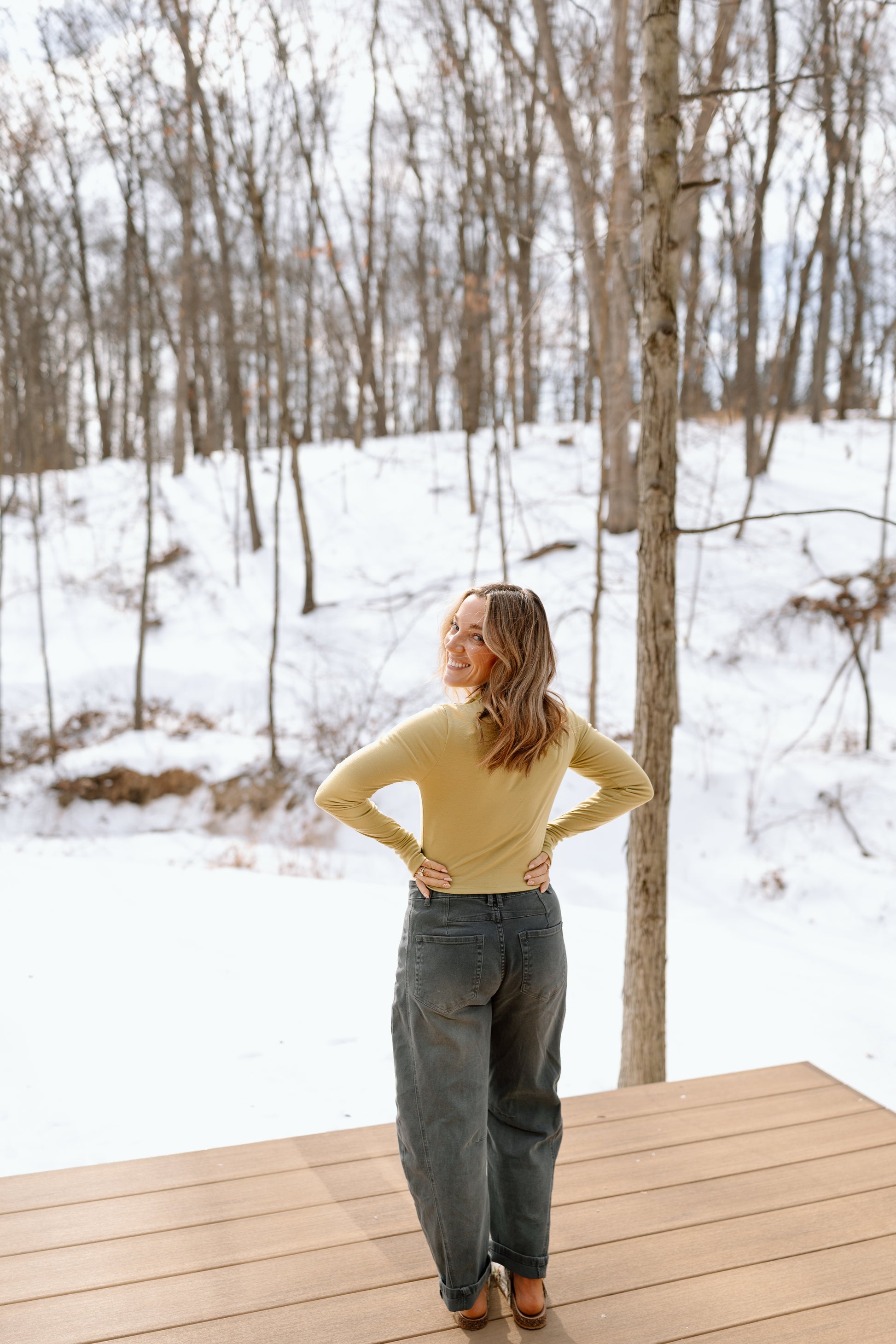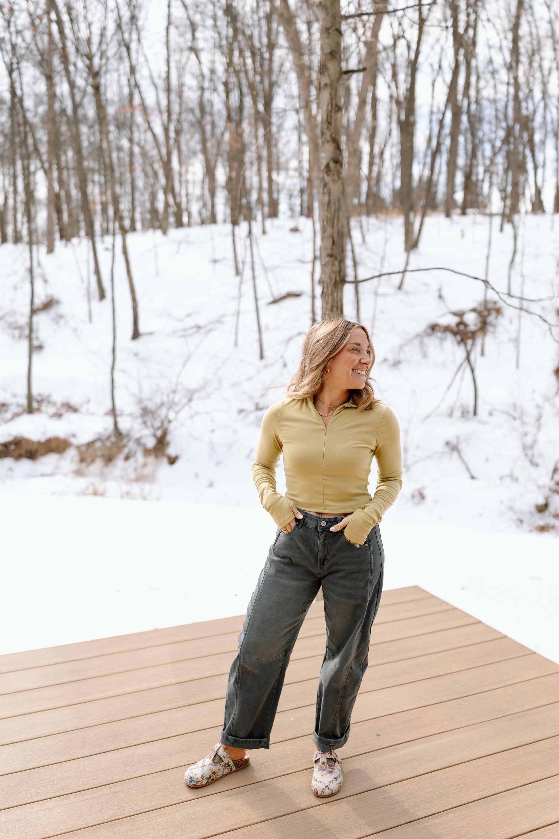 Mid rise, washed black denim. The perfect relaxed slight barrel.