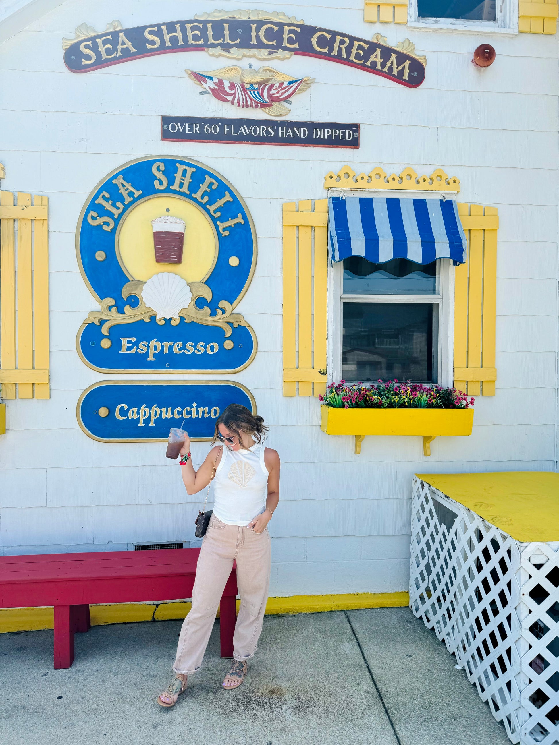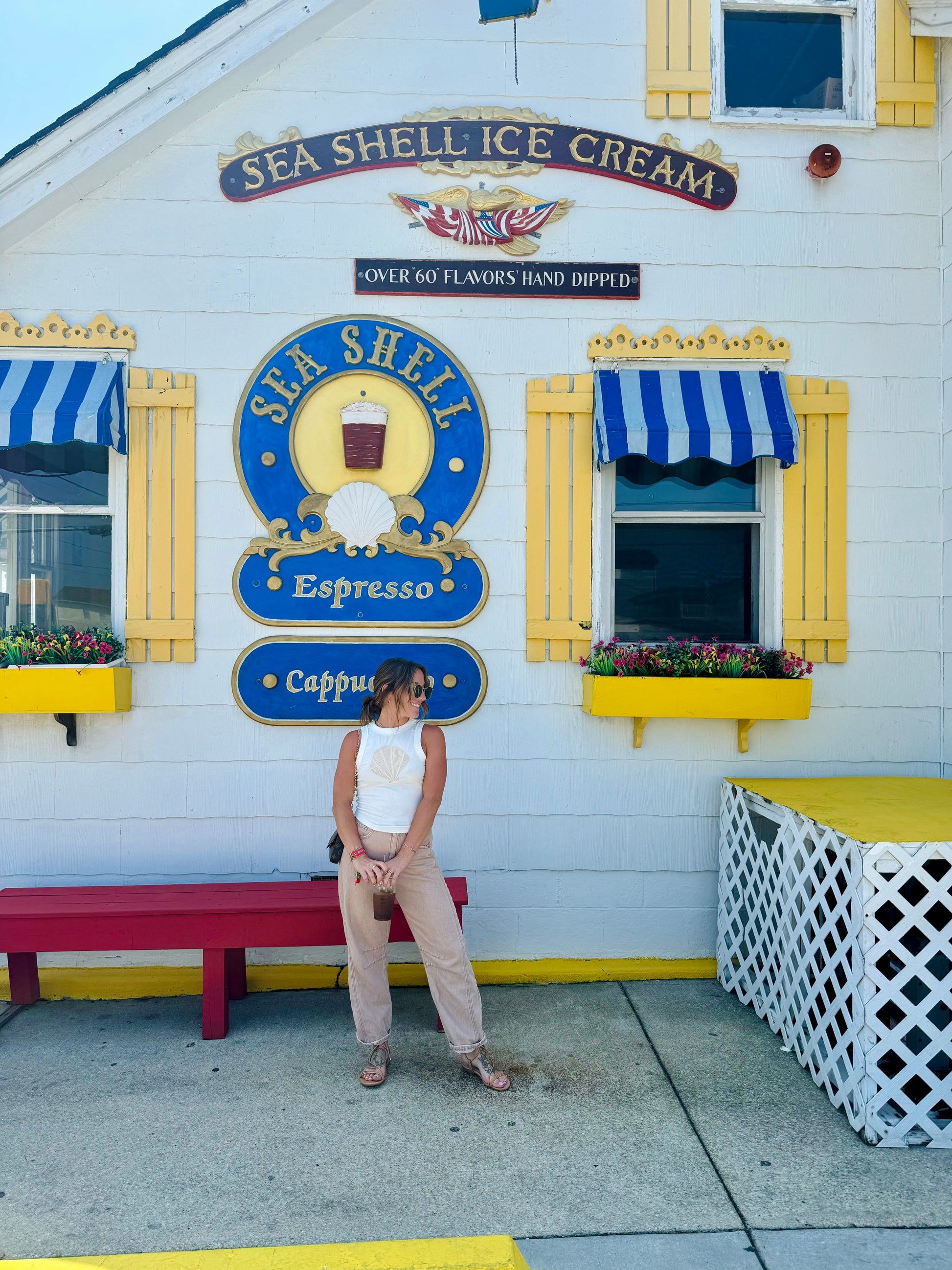 Shell embroidery tank, ribbed knit fabric. Curved bottom hemline, full length. True to size!