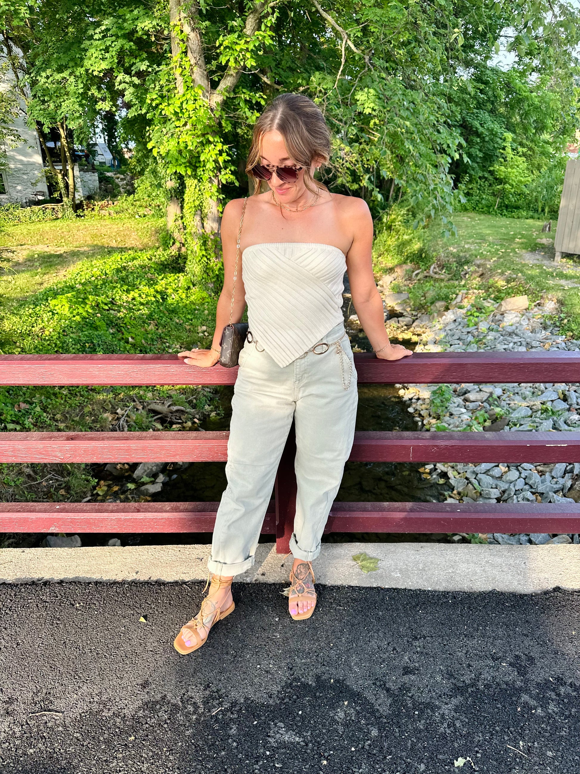 Sweater knit tube top with asymmetric detail. Obsessed doesn’t begin to describe how much we love this top!