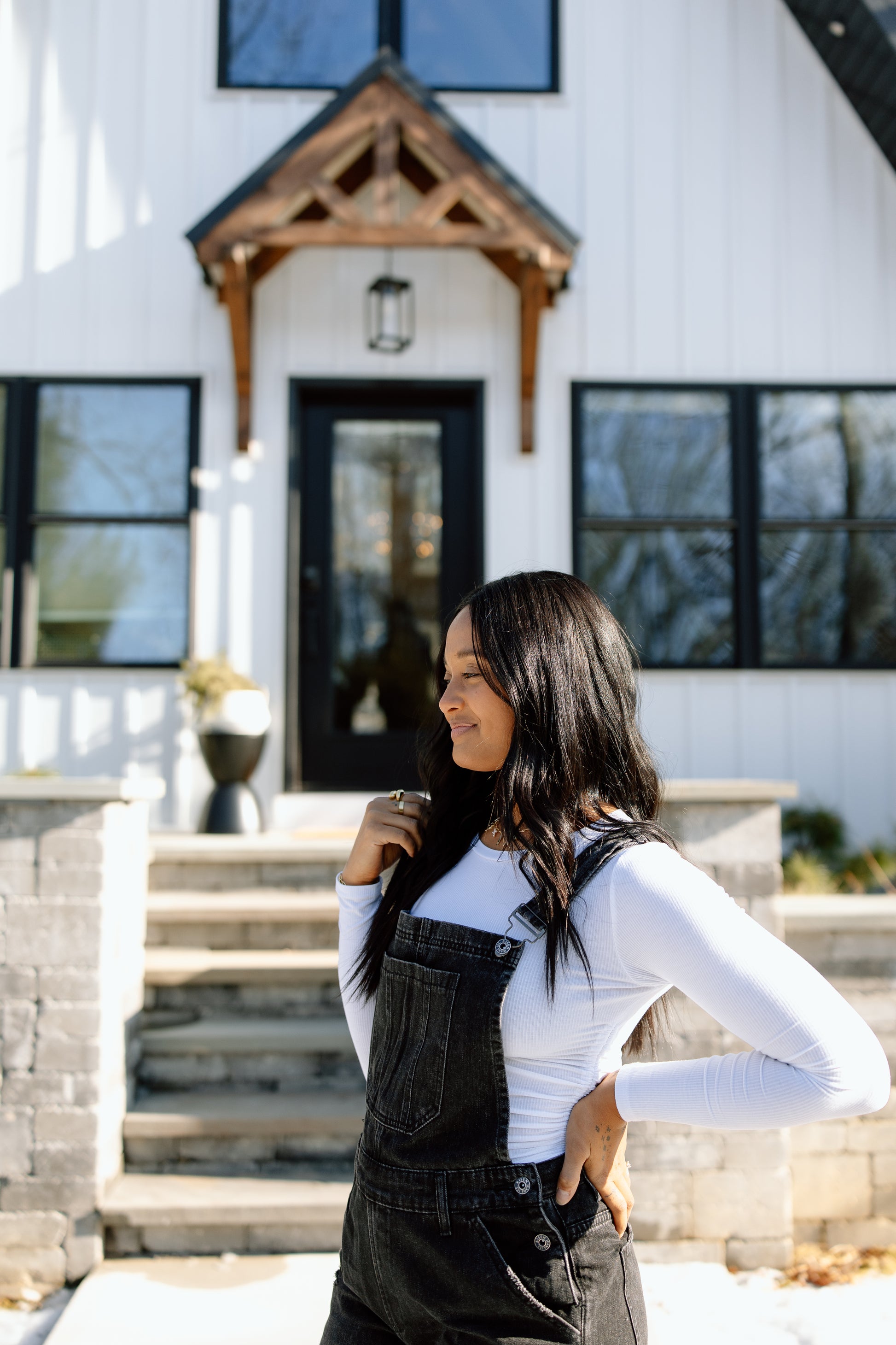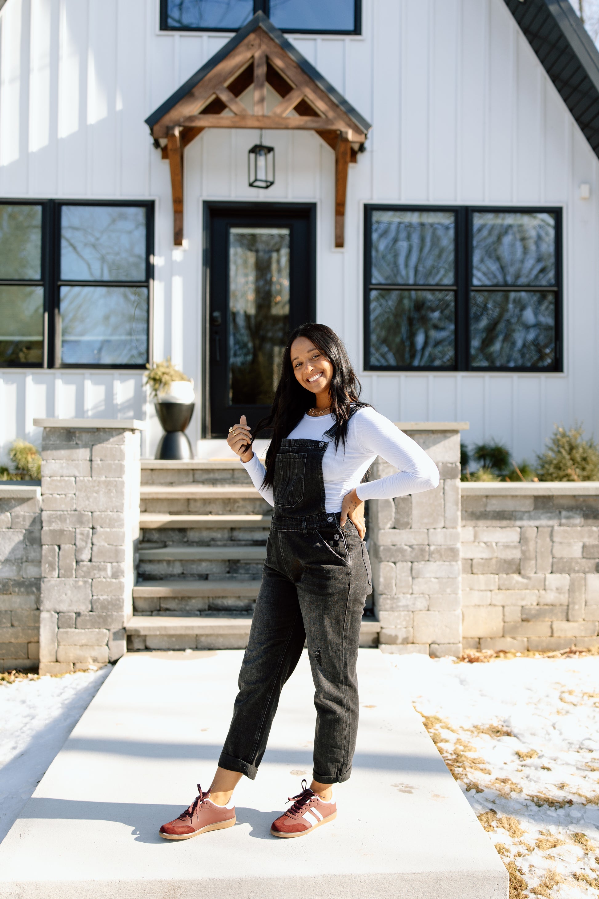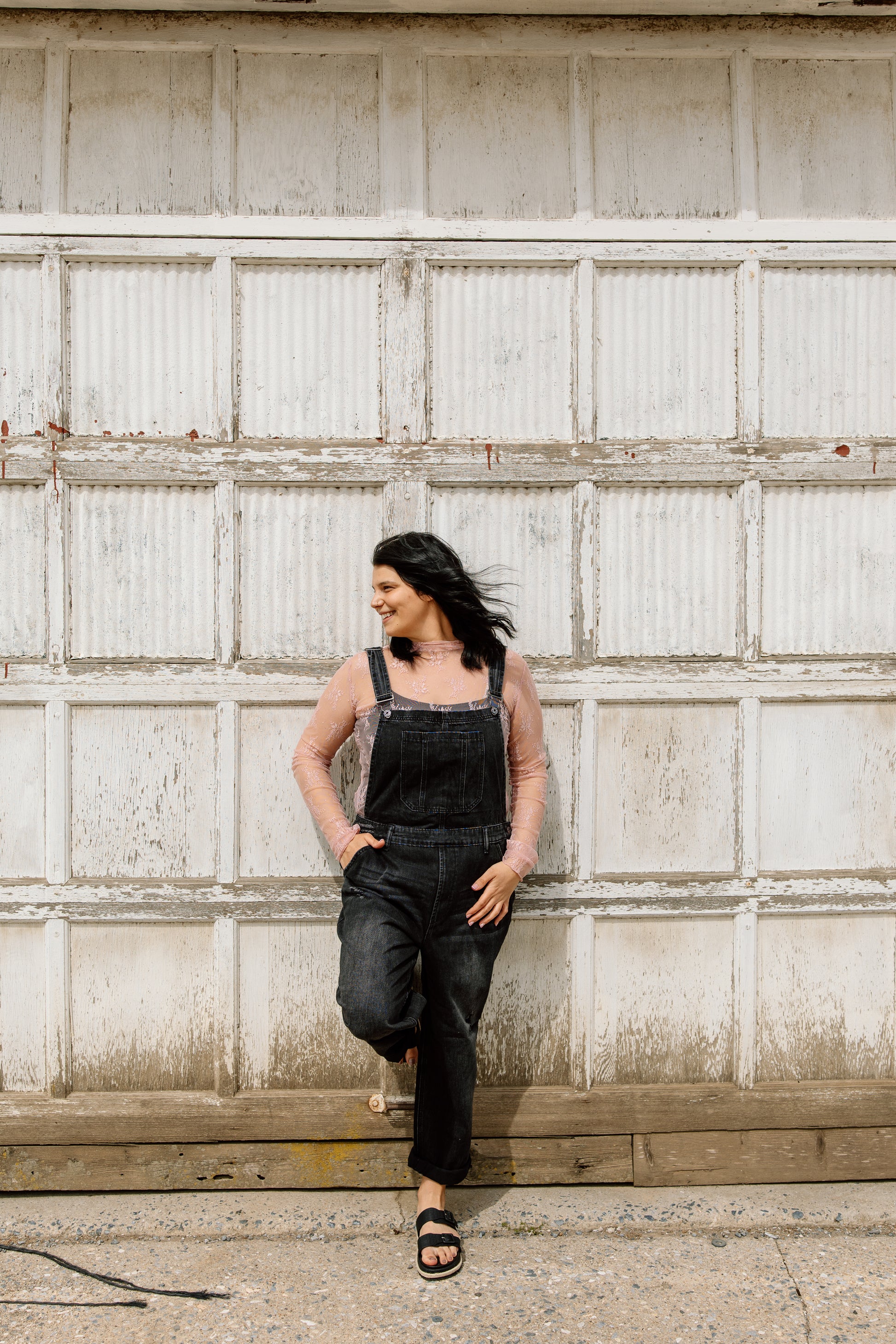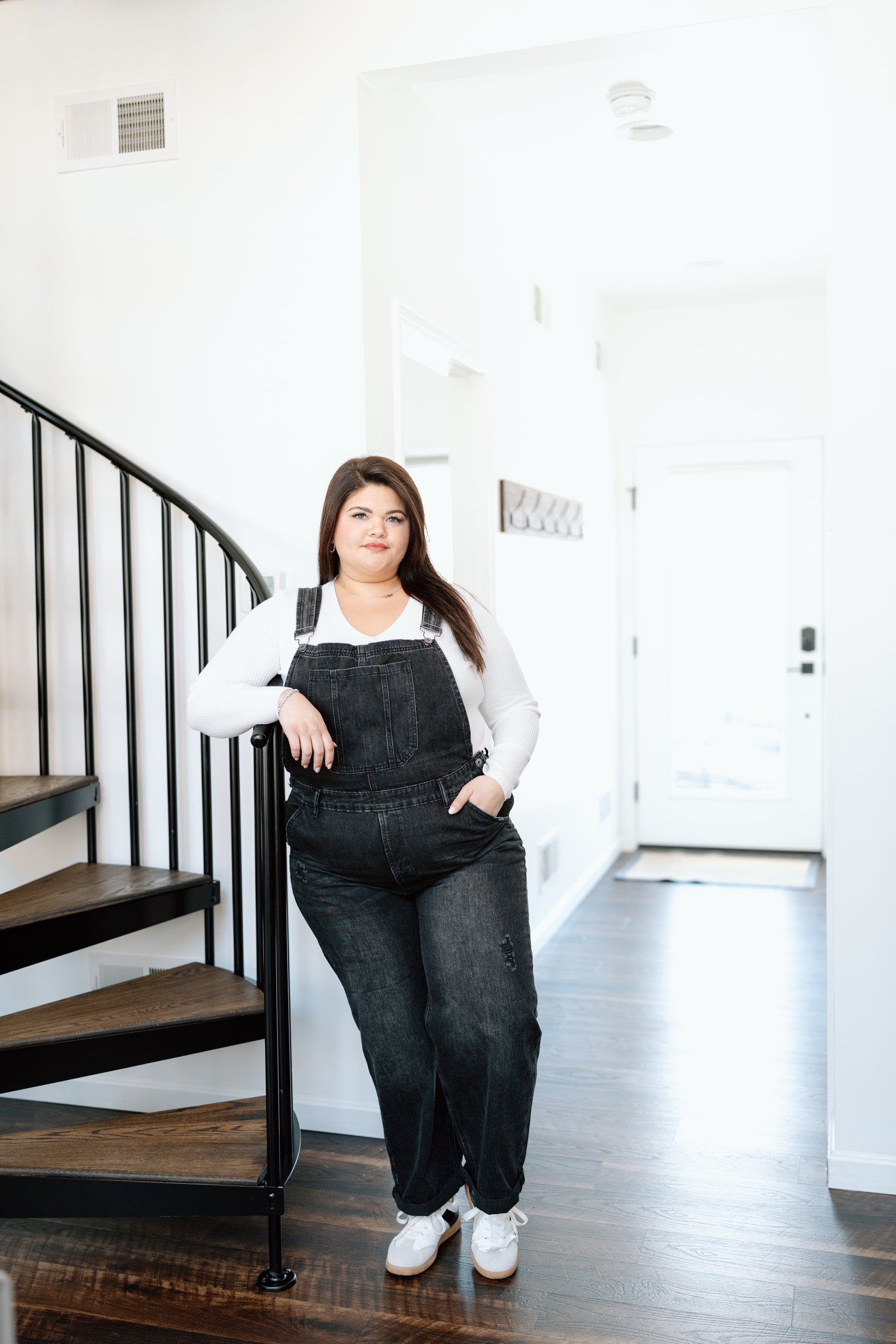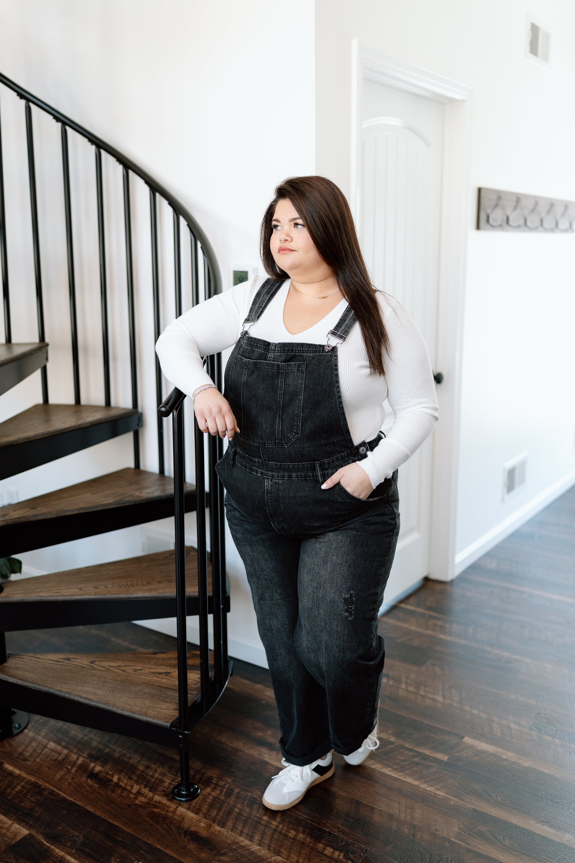 Relaxed fit, knee distressing overall denim. Rise 10 3/4, Inseam 27".